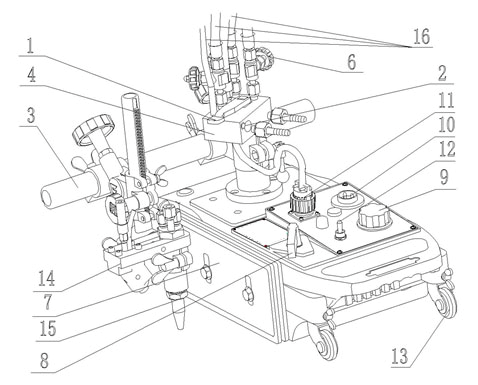 9.調速手輪 :調節機器行走速度