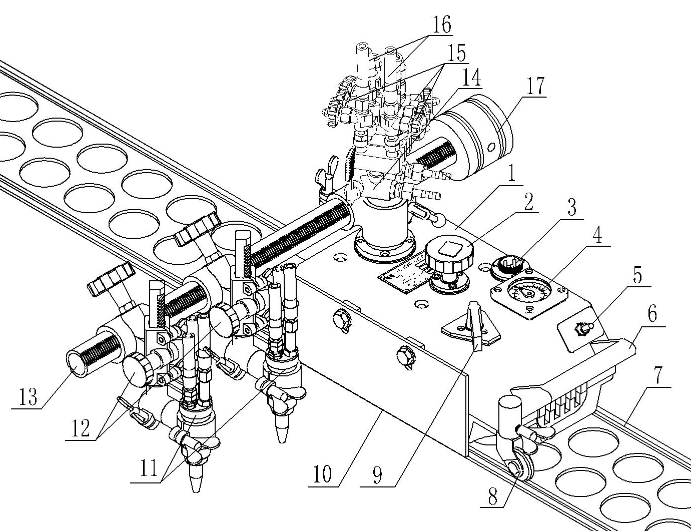 12. 割炬移動總成:調(diào)節(jié)割炬的縱、橫向位置。