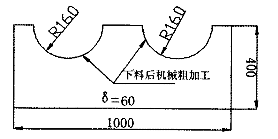 本部件兩半圓切割口下料后需要機械加工,由此可見對切割面的表面粗糙度要求相對高一些,而且板厚60 mill。如用手工下料難以保證圓弧的平滑過渡和垂直度。又因為批量不是太大,不適合使用仿形切割,使用數控火焰就解決了以上困難點。實例二:船用舾裝件部件